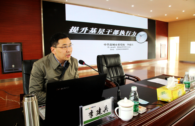 會(huì)議邀請(qǐng)了鹽城市委黨校黨委委員、教育長李建兵作《提升基層干部執(zhí)行力》的專題輔導(dǎo)。李教育長分別從樹立執(zhí)行意識(shí)、融入執(zhí)行團(tuán)隊(duì)、構(gòu)建執(zhí)行流程、規(guī)范執(zhí)行程序四個(gè)方面,系統(tǒng)闡述了如何提升基層干部執(zhí)行力和提升執(zhí)行力的重要性。