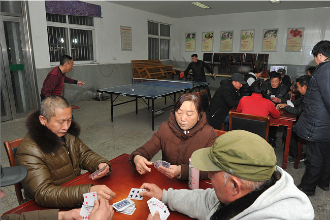 “夜幕降臨之時,他們就會準時打開活動室門窗,先把白天活動的桌椅歸到旁邊去,對地面進行清掃、散塵,然后就是支起乒乓球桌,燒開水,仿佛就像私人開的棋牌室般的貼心服務。”天天來這里打牌玩樂的六旬老漢趙恒寶感慨地說,“他倆是我們身邊的‘活雷鋒’,晚上大家結束時,他們還要把地面掃干凈了,桌子重新歸位后才回家。