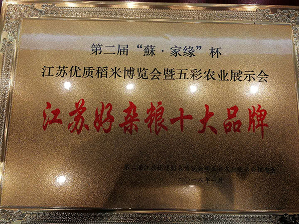 日前,新洋“糧博士”牌五谷雜糧第二屆“?·家緣杯”江蘇優質稻米博覽會暨五彩農業展示會上,被授予江蘇好雜糧十大品牌稱號