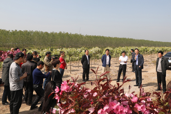 在臨海采風(fēng)的最后一站,被稱(chēng)為“水岸櫻花”的蘇北沿海地區(qū)優(yōu)良抗性櫻花種質(zhì)資源選育與示范推廣項(xiàng)目基地,大家聽(tīng)了賀在銳書(shū)記的介紹,了解到與南京林業(yè)大學(xué)合作的水岸櫻花,一期項(xiàng)目有26個(gè)品種、100畝,單個(gè)品種花期長(zhǎng)、花期晚,堪比全國(guó)知名樓花,是沿海鹽堿地種植櫻花的成功典范。櫻花二期項(xiàng)目將向東延伸至沿海高等級(jí)公路,三年后可實(shí)現(xiàn)可觀的經(jīng)濟(jì)效益。也許是要告別,也許是繽紛的櫻花太美了,大家拍照的興致更高了。
