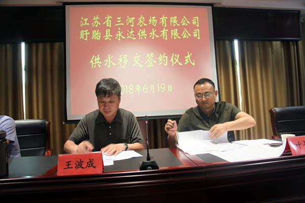 三河農(nóng)場有限公司與盱眙縣天源永達供水有限公司簽訂供水移交協(xié)議