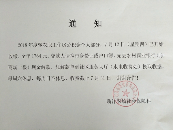 新洋扎實(shí)做好2018年度轉(zhuǎn)農(nóng)職工住房公積金收繳工作