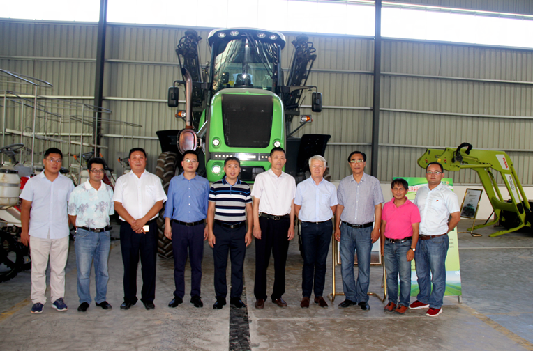 720日,法國Tecnoma(泰克諾瑪)有限公司全球銷售總監Doser Eric(多澤.艾瑞克)、中國區總經理熊書貴、技術經理曹云鑫一行到蘇墾農發黃海分公司考察交流,就其公司在黃海試驗示范的泰克諾瑪打藥機Laser3240試驗示范情況進行回訪調研。黃海分公司總經理、中德示范園主任賀在銳,黃海分公司副總經理、中德示范園副主任何彥平等陪同考察并介紹相關情況。
