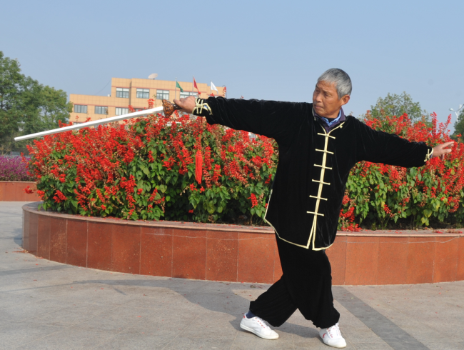 更讓林耀國欣喜的是,在練太極的過程中,讓他的生活更規(guī)律了,還在太極協(xié)會(huì)中結(jié)識(shí)了農(nóng)場不少志同道合的拳友,相互之間達(dá)到直言不諱,無話不說的地步,讓林耀國的心情十分開朗。也正如兒子林志純所講的那樣,得了五六年的慢性支氣管炎竟然達(dá)到了忽視的地步。以前氣管炎每年就要住院治療1-2次,還不斷咳嗽、氣喘不息,自從練了太極以后,就沒有再發(fā)過氣管炎,并且感覺自己的身心開始變得輕盈起來。對(duì)這,在太極協(xié)會(huì)練太極,讓林耀國收獲了人生中最快樂的時(shí)光。圖為林耀國在打太極拳劍時(shí)的鏡頭。