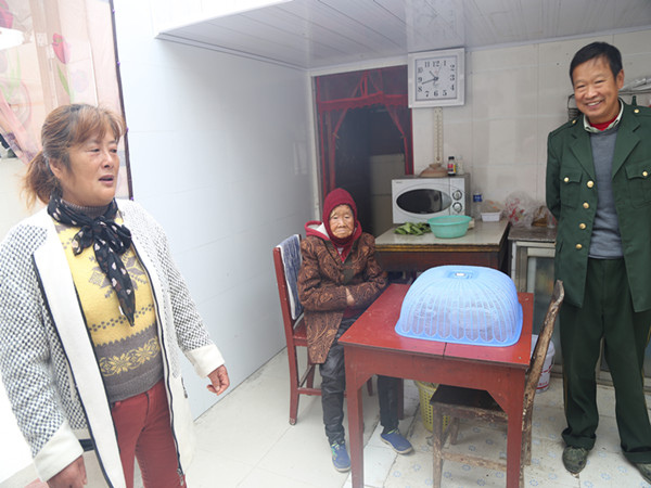 兒子這邊,周萍費了苦心,家里的兩位老人,她也盡心盡力照顧。2010年正月,周萍98歲身體一直健康的公公突然中風(fēng)了,可老劉外出打工,兒子在軍校學(xué)習(xí),周萍一時慌了,幸好鄰居經(jīng)過,看到了,給她叫了輛三輪車,到了醫(yī)院,她二話不說,背起老人直往病房樓跑,一百來斤的女子愣是把一百三四十斤的老人背到了三樓的病房,把醫(yī)生都看愣了。但老人畢竟上了年紀(jì),就此癱瘓了。吃穿都不愁,拉撒怎么辦呢?家里又沒有男人,婆婆95歲也需要人照顧,想到公公健康時那么愛干凈,一周都要去浴室洗一次澡,她咬了咬牙,對著已經(jīng)沒有意識的公公說:“爸,湘林不在家,我就是您親閨女,每個人都會老,我照顧您是應(yīng)該的。”過了幾日,浴室管理員看老人好久不來特地跑他們家,看到周萍正給老人換尿不濕,問人知道是兒媳后直豎大拇指。