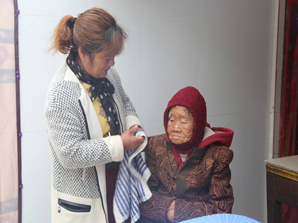 二老臥床,她一人精心伺候