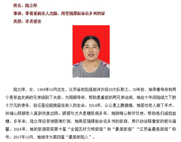 隨著陸立萍當選“鹽城好人”、祁兆花獲評射陽縣“最美家庭”、鹽城市第二季“最美巾幗”的消息不斷傳來,她們的勵志、感人事跡在新洋廣泛傳播,獲得了無數好評,并在全場形成了典型引路、爭做好人的良好風尚。