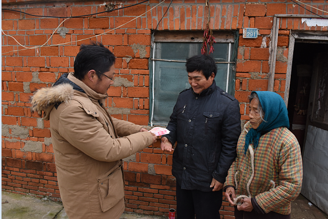 12月7日,大雪,今天突然的降溫讓大雪這個天氣更是異常寒冷,而在淮海農場四分場社區建檔立卡貧困戶許忠祥的心中,讓他覺得這個季節卻是很溫暖。因為讓他感到意外的是,四分場社區職工代表、私企老板顧權東今天來到許忠強家,拿出1000元現金紅包交給了他,并關照他天氣冷了,要多添加點衣物,吃飽喝暖,注意身體。
