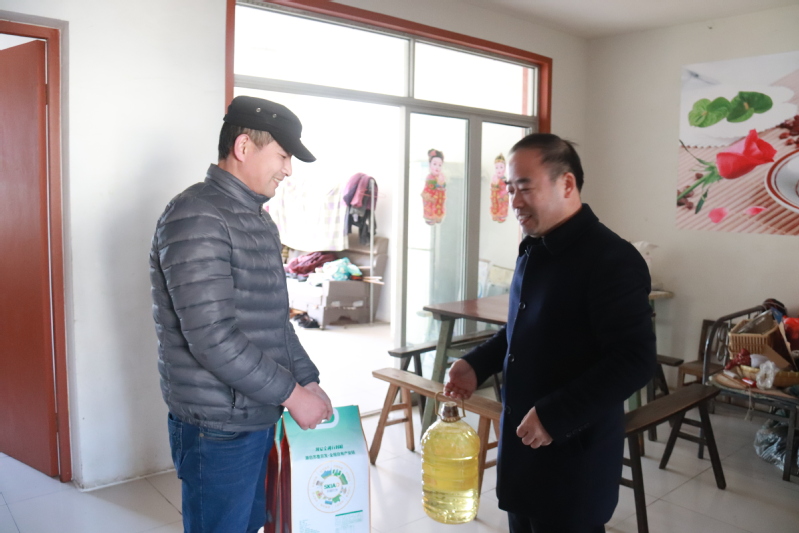黨委書記、董事長朱江勝帶著濃濃的關切之情看望了唐國忠家庭,給他送上米、油等慰問品和節(jié)日的祝福。在與唐國忠心連心的交流中,朱江勝認真傾聽了他目前遇到的困難及幫扶需求,詳細詢問了他身體及生活情況,特別是家里老人的身體狀況、孩子的學習情況,鼓勵他要勇于戰(zhàn)勝困難,積極樂觀的面對生活,囑咐他要注意身體,保持良好的心態(tài),堅定信心,早日脫貧。