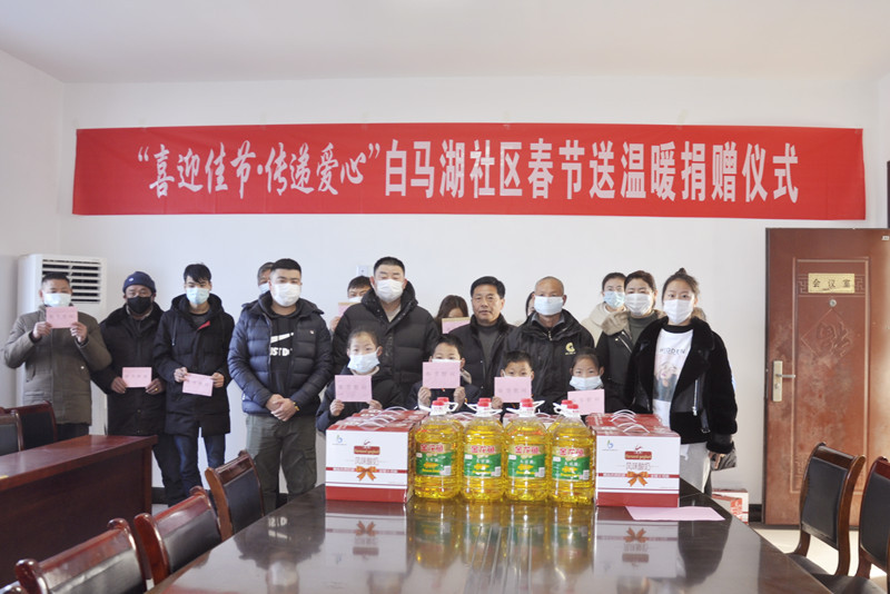2月8日上午,江蘇皇崗集團有限公司副總經(jīng)理胡萬紅帶領有關人員特意來到白馬湖農場裕源居委會,為韓春輝、韓得紅、王建林等十戶困難家庭送上了牛奶、食用油等慰問品以及各1千元的慰問金,并提前祝他們過一個溫馨祥和的春節(jié)。