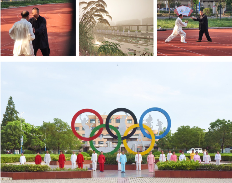 淮海目前有兩支老年太極舞蹈表演隊,他們有時分開表演,有時聚在一起鍛煉,規模也發展到現在的近百人。70多歲的趙梅生是淮海太極隊的教練,自學成才的她,她每天和隊友們一起有一個半小時的太極拳鍛煉時間,成了他們除陰雨天外雷打不動的健身節目,也成為以健康體育文化為特色的淮海獨特風景。