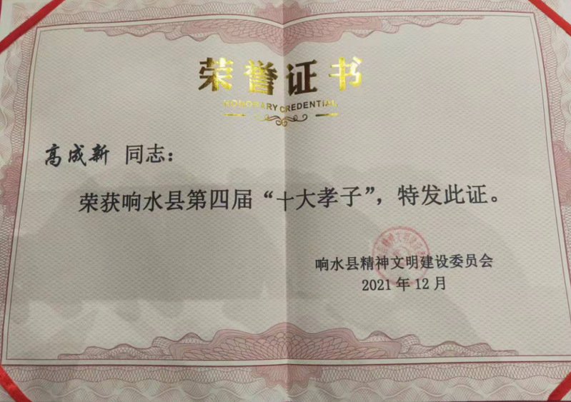 黃海:城西居委會居民高成新榮膺“響水縣第四屆十大孝子”稱號