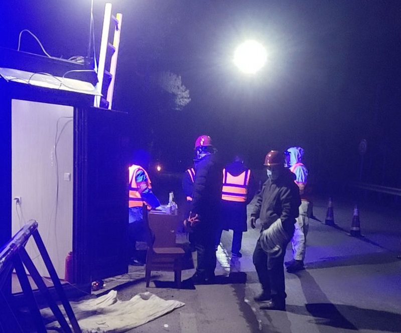 經過2個多小時的應急處置、奔赴、安裝。給夜幕下的防疫檢查點,更加安全、明亮。