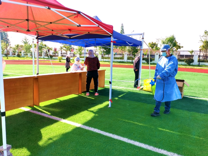 我在崗,您省心。“能做一點是一點,疫情防控是我們大家共同的事。”姜明亮是社區機關黨支部一名預備黨員,當他得知53日夜班值班人員臨時有事便主動請纓,從晚上八點到次日早晨八點,他把承諾當做責任來踐行。54日農場組織全員核酸檢測,他一掃夜班值守的疲憊,直奔迎湖健身廣場核酸采樣點,背上消毒機進行現場環境消殺。劉圩小學采樣點,只見一位“小藍”手拿擴音喇叭對著居民喊話:“病毒無情人有情,健康連著你我他,請大家保持一米線。”經過仔細辨認大家才認出她是社區財務劉玉。“平時聲音不大,維持秩序時聲音倒不小。”大家紛紛為她點贊。“您好,請出示身份信息。”三分場工作人員劉昕身穿白色防護服,正忙著采集身份信息。朝陽下,汗水浸透了衣衫、曬紅了臉頰,他卻沒有一聲抱怨。當天他共采集490個信息,這也是他連續五次完成三分場采集點數據采集任務。