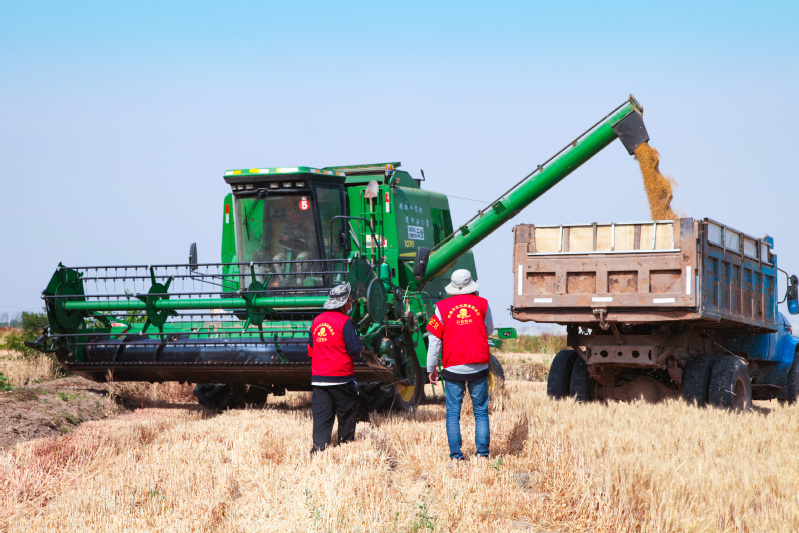 “三夏”大忙期間時間緊、任務(wù)重,隨著小麥陸續(xù)成熟,云臺未雨綢繆,黨員干部、管理人員、青年團(tuán)員等組成“三夏”生產(chǎn)志愿服務(wù)隊,全部下沉至各大隊和生產(chǎn)區(qū),通過采取有力管理措施,科學(xué)調(diào)配人員和農(nóng)機(jī)力量,解決“三夏”生產(chǎn)問題,有效保障三夏”農(nóng)業(yè)生產(chǎn)工作。在田間地頭,志愿者們正在指揮著收割機(jī),安排組織統(tǒng)一收割,盡管烈日當(dāng)頭、汗流浹背,但大家投身“三夏”的熱情卻依然不減,確保應(yīng)收盡收、顆粒歸倉;在各大隊曬場,黨員志愿者們充分發(fā)揮先鋒模范作用,大家搶抓天氣晴好有利時機(jī),拿起工具在曬場中揚(yáng)麥,并根據(jù)收割進(jìn)度、曬場壓力,制定了一套科學(xué)完整的烘干入庫方案,保障烘干工作“不斷環(huán)”,“三夏”農(nóng)忙“不掉鏈”;“三夏”期間安全生產(chǎn)最重要,志愿服務(wù)隊化身安全員,提前對機(jī)架人員進(jìn)行安全培訓(xùn),持續(xù)對麥田進(jìn)行巡邏排險,消除各類隱患,并分成4組小分隊,夜間值班值守對秸稈禁燒情況進(jìn)行檢查,保證“不點(diǎn)一把火,不冒一股煙”,確保安全生產(chǎn)無事故。
