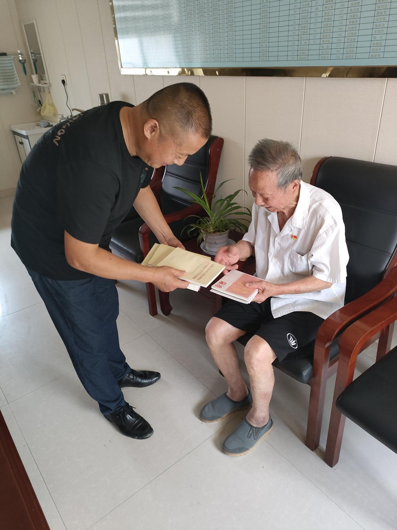 一番噓寒問暖,賴順祥說明了來意:“自己這幾年一直在外地兒子家生活,這次回農(nóng)場有兩件事要辦,一是回農(nóng)場收拾收拾自家的老房子,順便看看農(nóng)場近幾年的變化;二是自己在外多年,組織生活參加的少,懇請居委會能否幫我找些黨員學(xué)習(xí)資料,等回到兒子家的時(shí)候?qū)W習(xí)學(xué)習(xí)。”我聽后,先拿起一枚黨徽別再賴順祥胸前,然后吩咐辦事員陳旺將黨員活動中心備用的一套黨員學(xué)習(xí)資料交到賴順祥手中。看著賴順祥手捧資料那開心的神情,我和陳旺兩人也為之動容。