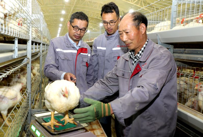 強化責(zé)任擔(dān)當(dāng),堅持真抓實干。公司領(lǐng)導(dǎo)每日深入各雞場進行巡視檢查,及時發(fā)現(xiàn)解決生產(chǎn)過程中遇到的問題、難點,為養(yǎng)殖場正常運轉(zhuǎn)保駕護航。全體干群立足本職,真抓實干,對照肉雞養(yǎng)殖管理規(guī)范化要求,加強巡舍檢查,嚴(yán)控投料飲水、溫控通風(fēng),通過“嗅、聽、看、問、感”推進精細(xì)化養(yǎng)殖,同時對標(biāo)一流養(yǎng)殖企業(yè),建立健全各雞場年度養(yǎng)殖考核責(zé)任制,充分調(diào)動干部職工生產(chǎn)積極性。“東升雞場今天開始將陸續(xù)出欄90萬只肉雞,這是公司今年出欄的第三批肉雞,前期東方雞場已銷售68萬只,料肉比達(dá)到1.45,處于行業(yè)較高水平。”公司養(yǎng)殖服務(wù)部主任華蕾說。