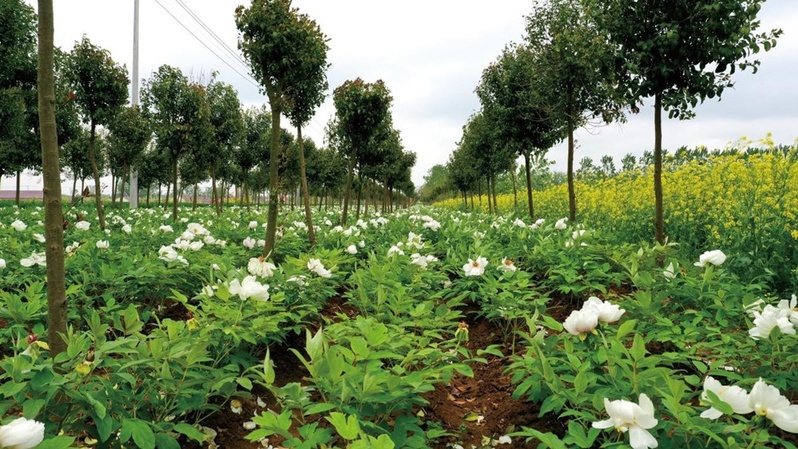 為了讓“綠葉子”變成“金票子”,黃海農場科學利用林間隙地,大力發展林下經濟,在一排排女貞樹下,油用牡丹茁壯成長。“采用女貞和油用牡丹林間套種模式,能相互取長補短,實現提產量、增效益、保生態等多贏目標。”農場林業中心主任王虎義說。