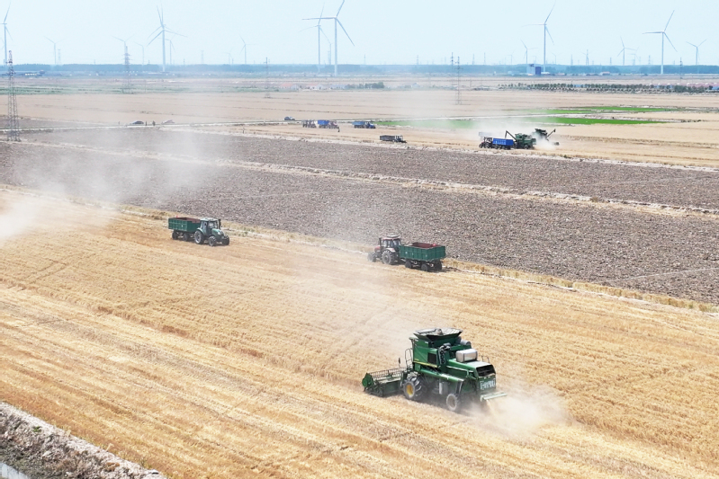 2025年5月29日,鹽城射陽(yáng)縣江蘇農(nóng)墾臨海農(nóng)場(chǎng)順泰生產(chǎn)區(qū)麥浪涌動(dòng),大型聯(lián)合收割機(jī)轟鳴作業(yè),率先拉開當(dāng)?shù)叵氖招←溞蚰?。近年來,農(nóng)場(chǎng)黨委以墾地合作推動(dòng)發(fā)展,通過技術(shù)賦能與鹽堿地改良,昔日鹽堿地蛻變?yōu)椤皣嵓Z田”,為鄉(xiāng)村振興打造國(guó)有農(nóng)業(yè)新樣板。