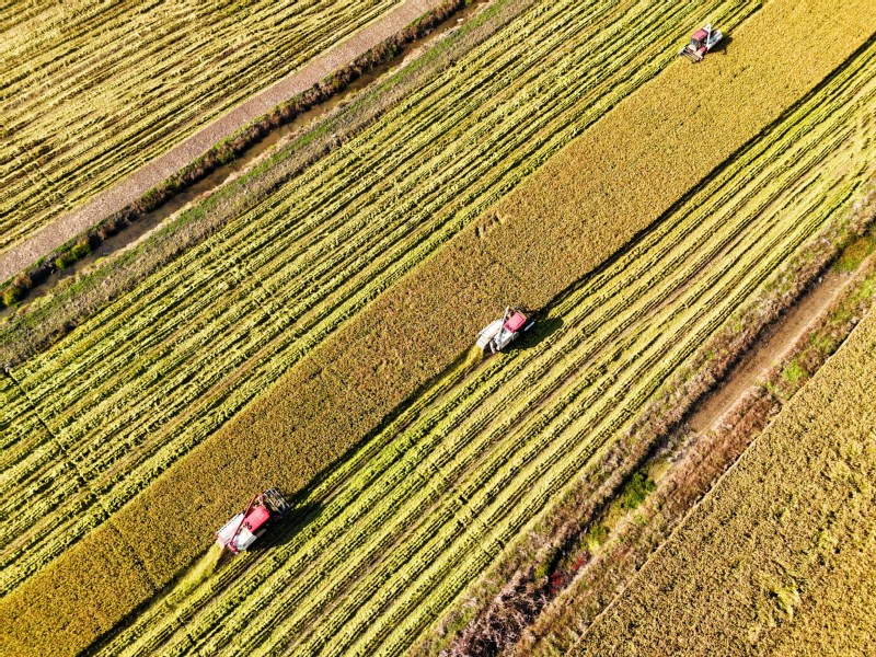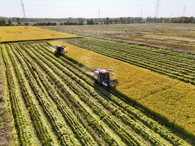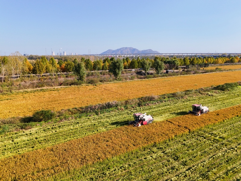 11月2日,在江蘇省連云港市海州區(qū)江蘇農(nóng)墾崗埠農(nóng)場的高標(biāo)準(zhǔn)農(nóng)田里,職工們利用晴好天氣,積極開展水稻搶收工作,確保不誤農(nóng)時(shí)、顆粒歸倉。