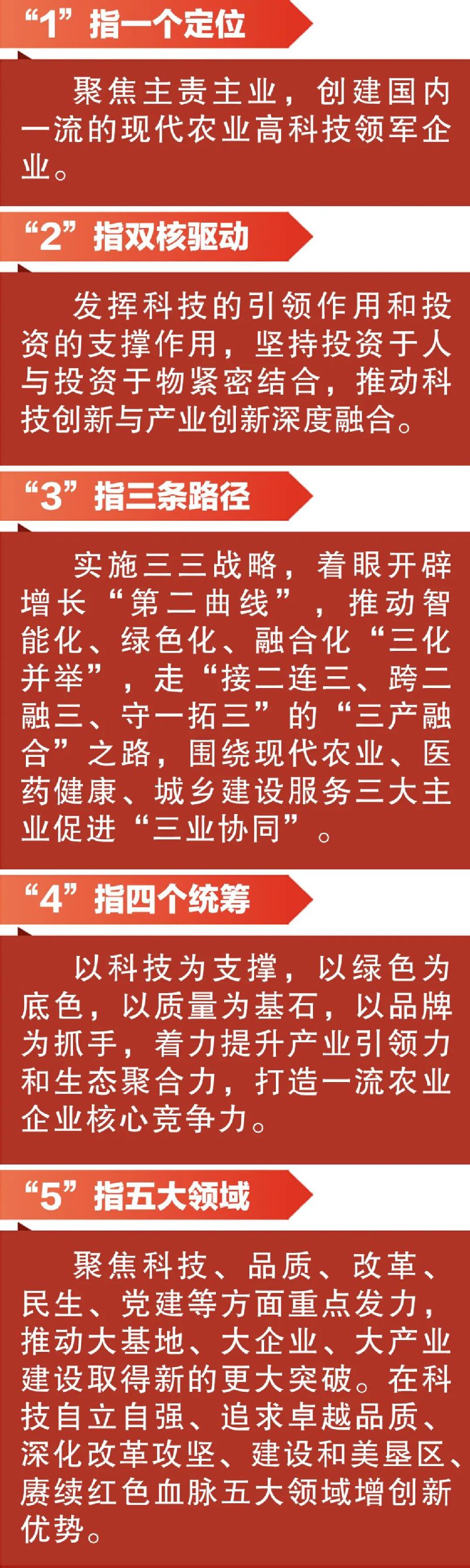 集團“十五五”發展總體要求是:堅持以習近平新時代中國特色社會主義思想為指導,深入學習貫徹習近平總書記系列重要講話重要指示,尤其是關于江蘇工作、“三農”工作、國企工作的重要論述,認真落實省委省政府決策部署,扛牢“示范區、國家隊、排頭兵”的職責使命,緊扣“爭當表率、爭做示范、走在前列”的總體目標,聚焦現代農業、醫藥健康、城鄉建設服務主業,堅持“智能化、綠色化、融合化”發展方向,形成產業鏈縱向延伸、橫向拓展、產融結合、多元集成的發展格局,加快建設一流企業,在“強富美高”新江蘇現代化建設中展現更大擔當。