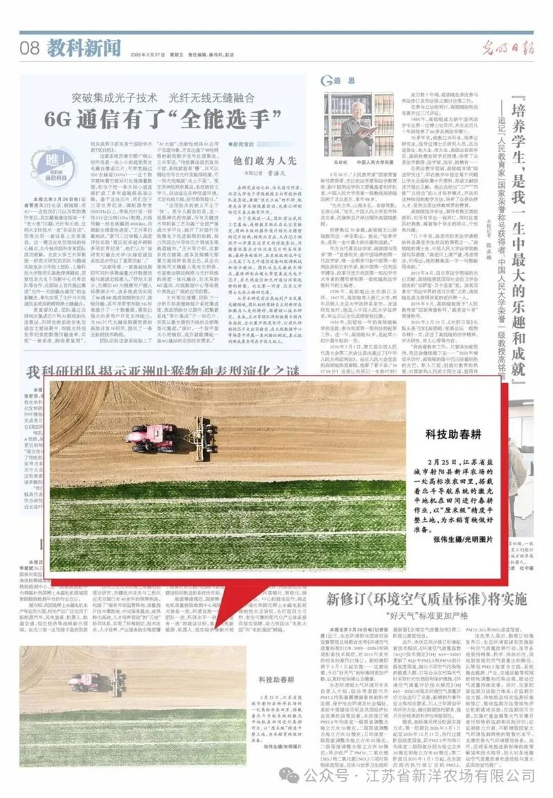 連日來,中央電視臺、《經濟日報》《光明日報》等多家中央主流媒體將目光投向江蘇農墾新洋農場春耕春管一線,集中報道農場依托現代科技賦能農業生產的生動實踐,展現新質生產力在田間地頭煥發出的蓬勃活力。