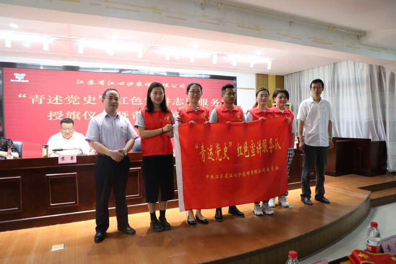 為深入學習貫徹習近平總書記在黨史學習教育動員大會上的重要講話精神,創(chuàng)新黨史學習教育形式,5月10日,江心沙農場有限公司在職工之家二樓會議室隆重舉行了“青述黨史”紅色宣講志愿服務隊授旗儀式暨青年表彰大會。農場公司黨委書記、董事長、分公司總經理朱江勝,黨委副書記、總經理、社區(qū)管委會主任薛忠等班子成員出席會議并講話。