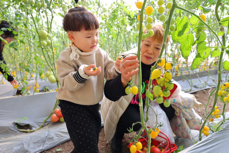 新春佳節之際,在江蘇省崗埠農場的高效農業示范園,游客們利用周末假期等時機,組團走進溫室采摘園,挑選品嘗不同品種的番茄,與家人朋友享受冬日鄉村采摘的樂趣。