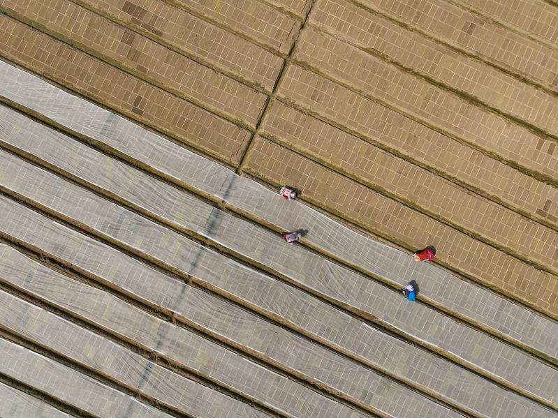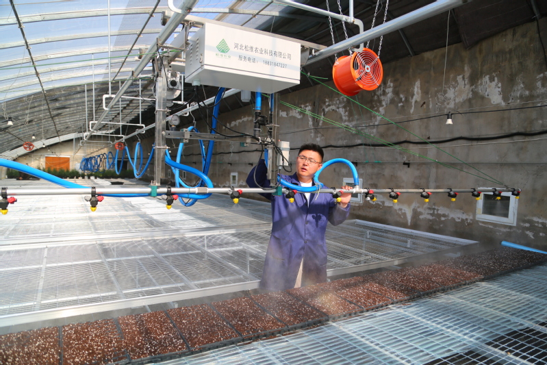 5月20日,崗埠農場高效農業示范園內,新改造的科技育苗大棚迎來首次育苗工作,工作人員在大棚里進行剪枝、培土、擺盤、扦插、噴淋等作業。據悉,育苗大棚引進物聯網智能控制系統,實現對大棚內溫、光、水、肥、空氣等環境因素的全面調節和優化,有效提高育苗成活率,提升生產效率。