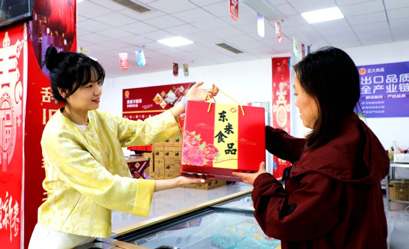 走進東辛農場東米公司門店,工作人員正熱情地向顧客推介與灌南溫氏食品公司合作的雞爪、雞胗、雞翅中等產品,以辛勤勞動助力企業一季度實現“開門紅”。