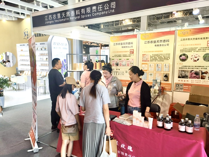 7月29日至31日,江蘇農墾天然香料有限責任公司亮相2024第十屆芳香產業(上海)展覽會參展。香料公司圍繞大馬士革玫瑰精油、純露、化妝品、香薰等玫瑰深加工產品及大馬士革玫瑰種植、生產、銷售等全產業生態鏈進行展覽展示,知名度、影響力進一步提升。香料公司的產品均由國際專業機構進行檢測,以特有的芳香、別致的造型和精美的工藝,吸引諸多國內外客商洽談交流。山東惠農玫瑰銷售總監閆超、四川小金縣高原玫瑰基地帶頭人“玫瑰姐姐”陳望慧、夢莉嬌品牌創始人張俊峰、玫瑰頌品牌創始人李志剛等行業先鋒在公司展位與香料公司參展人員熱烈交流,探討拓寬芳香行業的融合發展之路,表達了與香料公司開展合作的意向。本次展會匯集了全球超過250家知名品牌參展,展覽面積達到13000平方米,涉及芳香植物種植、提取設備、精油及純露、空間香氛、純植物洗護、健康管理機構、芳香療法教育培訓、香道文化等各類展品,令人目不暇接,展示了芳香全產業生態鏈。