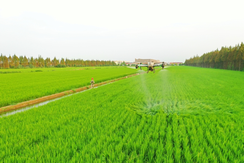 8月26日,江心沙農場“低GI”功能大米試驗田,農業技術管理人員操控植保無人機進行微生物菌劑噴施作業。據了解,該菌劑可提高作物對營養元素的吸收利用,降低病害發生,直接促進作物生長,同時還能減少藥肥施用量,降低農業面源污染。