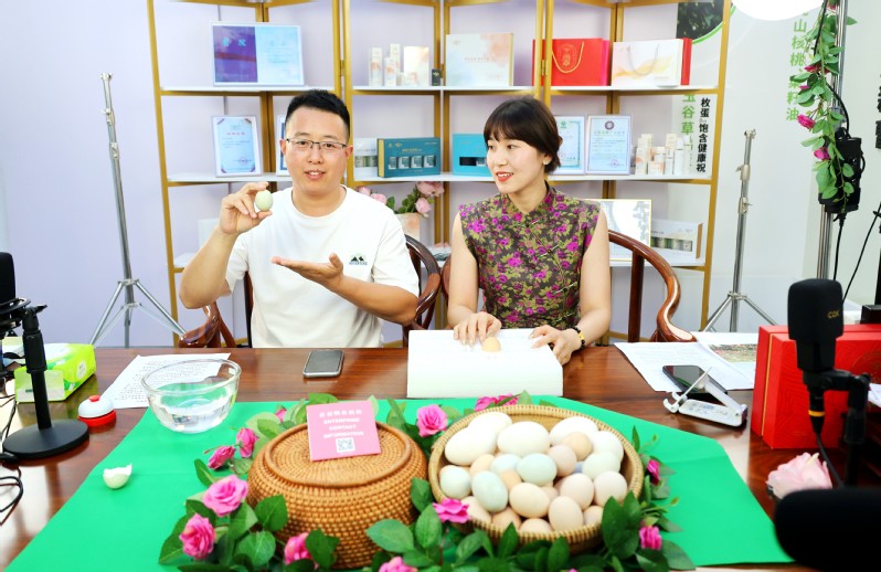 “歡迎來直播間的小伙伴們,現在介紹我們的玫瑰香雞蛋,喜歡的小伙伴可以直接點小黃車下單啦……”在新曹農場新時代文明實踐所二樓的直播室內,主播婷兒和軍軍正在抖音平臺進行直播帶貨。自今年五月開播以來,新曹農場公司抖音官方賬號粉絲量從0增長至6000多人,成功將農場特產銷往全國各地,開辟了新的銷售渠道,促進了農墾品牌的健康發展。