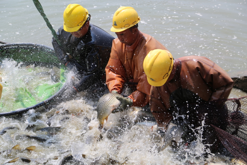 入夏以來,崗埠迎來水產(chǎn)品捕撈銷售的黃金季節(jié)。7月4日一大早,崗埠農(nóng)場公司北漁場的養(yǎng)殖塘口便響起了“起網(wǎng)”的號(hào)子聲,隨著工人們相互配合,一起發(fā)力將巨型漁網(wǎng)緩緩收攏,一條條活蹦亂跳的大魚出現(xiàn)在人們的視野中,平靜的水面上也頓時(shí)水花飛濺,大魚歡快地躍出水面,一片人歡魚躍的豐收景象。“2024年上半年,養(yǎng)殖中心緊跟市場行情,連續(xù)開展捕魚銷售作業(yè),爭取效益最大化。”在捕撈現(xiàn)場,中心負(fù)責(zé)人單懷亞一邊指揮分揀水產(chǎn)品,一邊介紹。養(yǎng)殖中心充分發(fā)揮“淮河牌”水產(chǎn)品品牌優(yōu)勢和無公害水產(chǎn)品養(yǎng)殖規(guī)模化、標(biāo)準(zhǔn)化、高效化的優(yōu)勢,促進(jìn)水產(chǎn)養(yǎng)殖健康發(fā)展。今年以來,水產(chǎn)公司加快調(diào)整養(yǎng)殖模式,優(yōu)化養(yǎng)殖結(jié)構(gòu),采取“輪捕輪放,按需銷售”管理模式,準(zhǔn)確把握市場行情,確保全年都有鮮魚上市。“每年這個(gè)時(shí)候是水產(chǎn)銷售旺季,近期北漁場和南漁場將先后進(jìn)行水產(chǎn)捕撈銷售。我們時(shí)刻關(guān)注市場動(dòng)向,爭取銷售效益最大化。”單懷亞表示,養(yǎng)殖中心積極對(duì)接市場,努力提高水產(chǎn)銷售效益。據(jù)悉,夏季捕撈的魚獲以鯉魚、花鰱、白鰱為主,最重的鰱魚有15斤以上。僅7月4日當(dāng)天,捕撈銷售水產(chǎn)品28000斤,銷售額14萬元。下一步,養(yǎng)殖中心將繼續(xù)利用好水資源優(yōu)勢,結(jié)合產(chǎn)業(yè)發(fā)