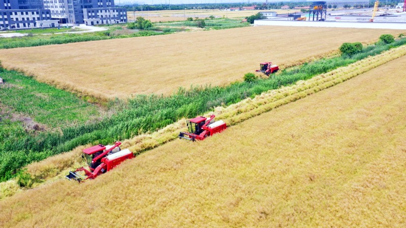 5月20日,小滿當天,蘇墾農發江心沙分公司本部1000多畝油菜田迎來大規模收割作業。收割機在田間來回穿梭,喜迎“三夏”第一鐮,隨著割刀高速轉動,油菜被割倒堆放在一旁,形成一條長長龍。據了解,這屬于“兩段式”機收,油菜就地晾曬幾天后,再由機器撿拾脫粒,可有效減少損失。