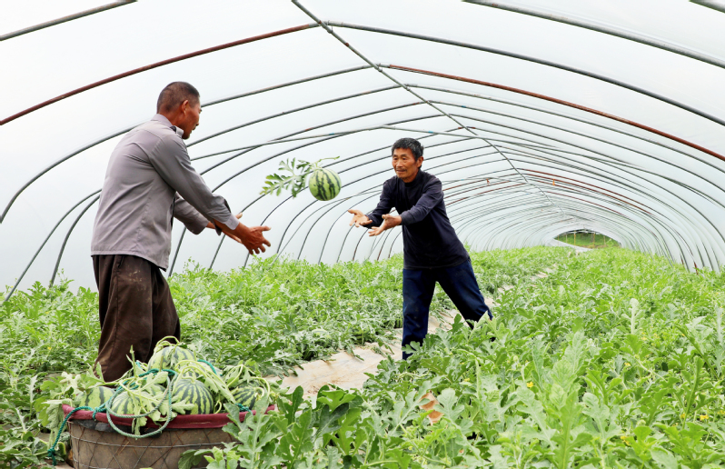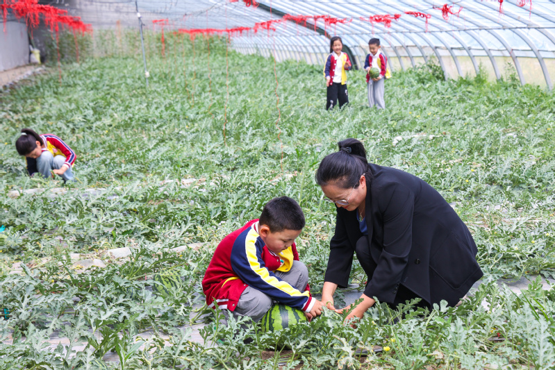 5月9日,云臺農場云水灣濕地公園西瓜采摘園內,四季陽光幼兒園的小朋友們正在老師的帶領下采摘西瓜,感受豐收的喜悅,體驗采摘的樂趣。近年來,云臺農場大力發展生態旅游業,依托良好自然資源稟賦,發展高檔蔬菜、優質瓜果、特色采摘,助力鄉村振興。