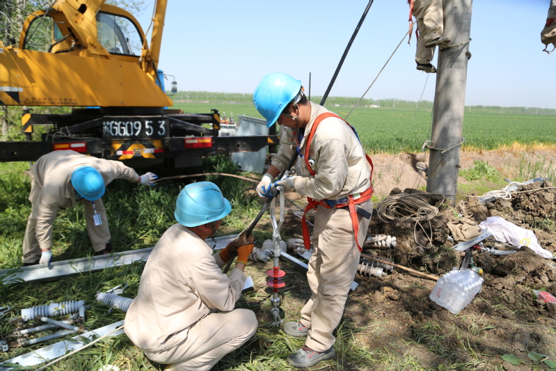 4月26日,凱惠電力公司崗埠項目部聯合凱惠本部工作人員,在崗埠農田里架設電網,為“三夏”水稻育秧、稻田排灌做準備。
