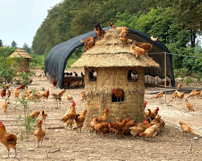 處暑剛過,白露將至,天氣逐漸轉涼。為給三分場杜仲林下生態養殖場的草雞們創造一個溫暖、舒適的棲息環境,日前,寶應湖農場生態農莊結合家禽養殖時間、空間、健康需求,集中采購6個草編雞棚,進一步增添了農莊的生態韻味。“我們選擇草棚式雞窩主要是順應草雞生活習性,給雞群營造生態環境,利用農場生態優勢,為游客們帶來沉浸式生態旅游體驗。”生態農莊負責人一邊查看雞棚質量,一邊介紹道。“雞棚用料厚實,為降溫天氣雞群安全提供保障,敞開式雞窩供草雞休息、產蛋,有高有低的空間設計幫助雞群鍛煉體力,能增強雞肉緊實度。”“咯咯咯、嘰嘰嘰……”清晨,一陣陣歡快的雞鳴聲清脆悅耳、此起彼伏,杜仲林下生態養殖場一下子變得熱鬧起來。只見,草雞們三五成群,或覓食、或散步、或撲棱著翅膀從平地“飛”上枝頭。新雞棚里,剛剛產出的雞蛋粉紅透亮、留有余溫,閉目養神的雞仔還在享受“新家”的舒適,更有一群精力旺盛的“探險家”草雞們或是鉆進草棚雞窩試試高度,或是登上棚頂“一比高下”。近年來,寶應湖農場生態農莊確定“生態、散養、健康、優質”發展思路,全力推進特色養殖產業不斷走新走實。一是在選址上依托生態環境美。將1500棵珍貴杜仲樹納入養殖場范